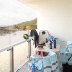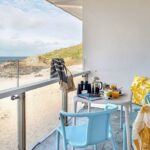 The living area is a highlight, the large windows give a full picture view of the Atlantic, sit back and watch the sea, wildlife and beachgoers go about their days. And did we mention the infamous Porthmeor sunsets? They are not to be missed regardless of the time of year. There are two comfortable sofas in here, dining table, 43″ Smart TV and DVD player, hifi system and access to your private balcony with the same stunning views.