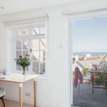 Upstairs is a double bedroom with stunning sea views, a bathroom featuring a roll top bath with overhead shower and a lovely light room with sofa and workspace. It’s the perfect place for writing, drawing or work. Through a set of glazed doors is a balcony with sea views towards St Michael’s Mount.
